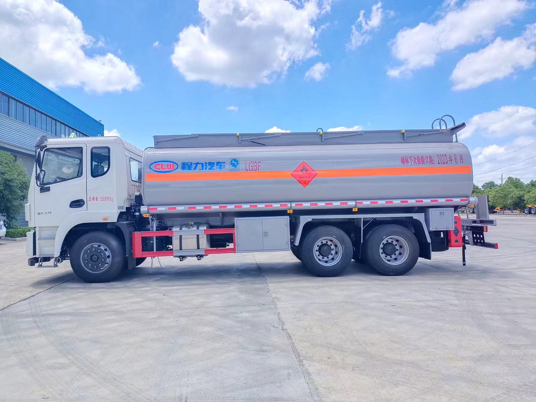??????湖北程力汽車:程力?;\輸車東風錦程21.7方油罐車產品型號及參數配置,程力危化運輸車東風錦程21.7方油罐車高清圖片,程力汽車系列程力?;\輸車東風錦程21.7方油罐車最新報價請撥打客服熱線。車輛主要配置 產品商標 程力牌 公告批次 362(擴展) 產品名稱 運油車 產品型號 CL5260GYY6BWG 總質量(Kg) 26000 罐體容積(m3) 21.7 額定載質量(Kg) 14500,14565 外形尺寸(mm) 960025503500,3480 整備質量(Kg) 11...