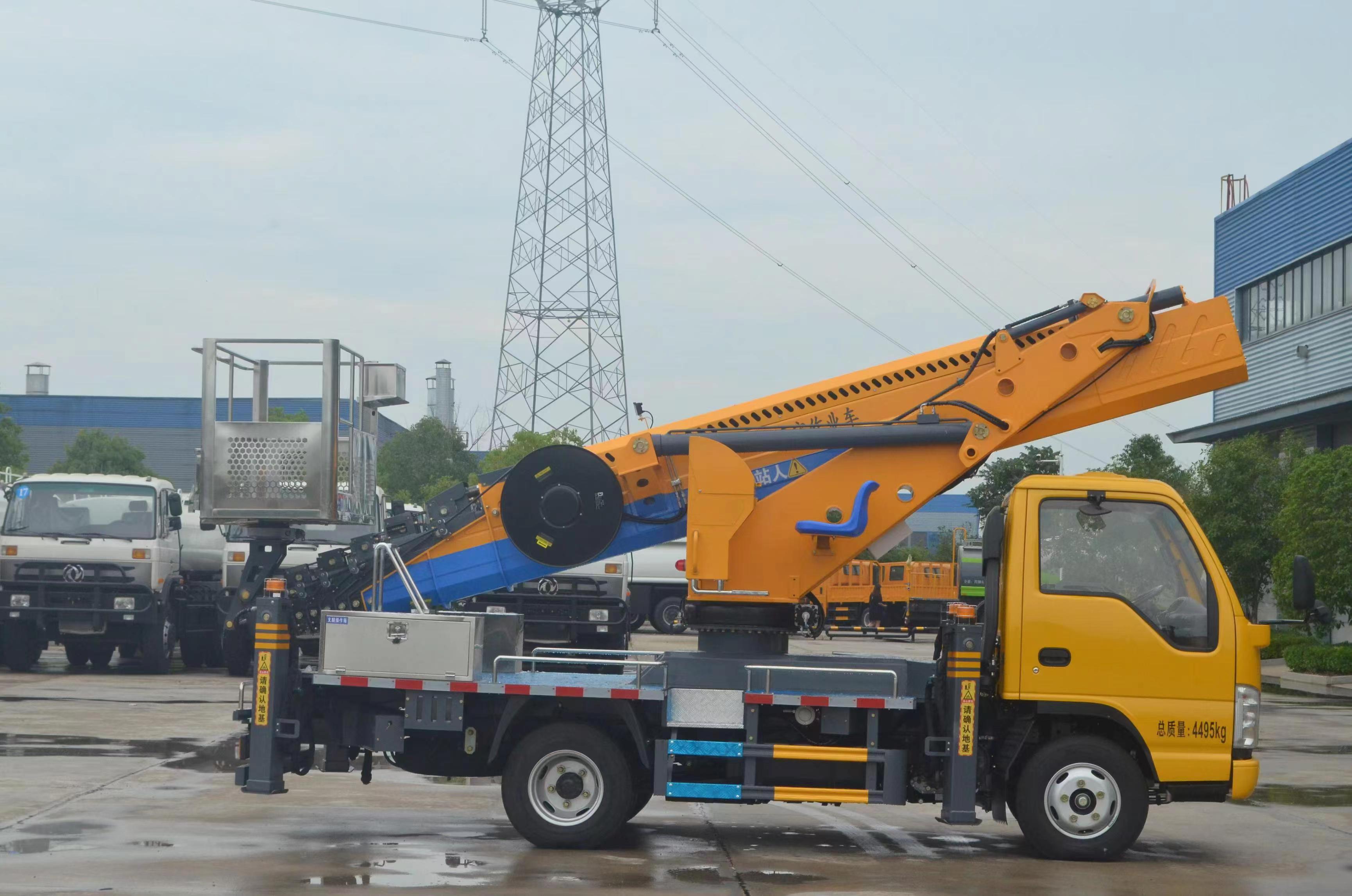 | 上裝配置 | 不銹鋼圍欄及防滑走臺板,高強度不銹鋼工作平臺 (尺寸:1600X700X1000mm),七節十四邊形型工作臂,同步伸縮,回轉裝置 360 度連續回轉,前 V 后 V 型支腿,單獨可調(控制),電控操作,另配有手動應急操作 控制系統,CAN 總線控制系統,配有無線遙控器、實現 無級調速,靜液自動調平; CL5045JGK6ADS 型高空作業車基本功能安全配置:作業車可以實現平臺載荷 200KG,最大作業高度 33 米,最大作業幅度 15 米。 上下車自動互鎖裝置,用于上下車互鎖,防止誤操作發生危險,手動應急泵,當發動機及主泵發生故障時,可通過應急系統將工作人員送回到地面及整車收回至行車狀態,工作平臺緊急停止 裝置,緊急動限制工作幅度,當工作幅度達到規定值時,自動限制危險方向工作;當出現支腿支地不實時(軟腿),舉升臂架將限制危險方向工作。(選配) 夜間安全警示裝置,在車輛上有工程頻閃燈,LED 照明燈發動機點火熄火,控制器可對發動機進行點火,熄火控制;被限制工作時,可通過“強制”功能拓展工作; | ||